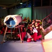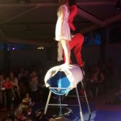 Eigens für unseren Auftritt wurde ein Teil der Bühne zur Seite geschoben, um Platz für unseren Bock und die Matten zu schaffen, damit die Deckenhöhe für unsere Hebefiguren ausreichte. So kam es, dass wir fast bei der Jury auf dem Tisch turnten.