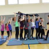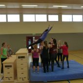 Immer wieder werden wir gefragt, ob man bei uns mitmachen kann. In den Osterferien war es dann endlich soweit: Wir boten einen Akrobatik-Lehrgang an und waren erfreut über das große Interesse. An zwei Tagen trainierte unsere Showgruppe 40 Kinder und Jugendliche.